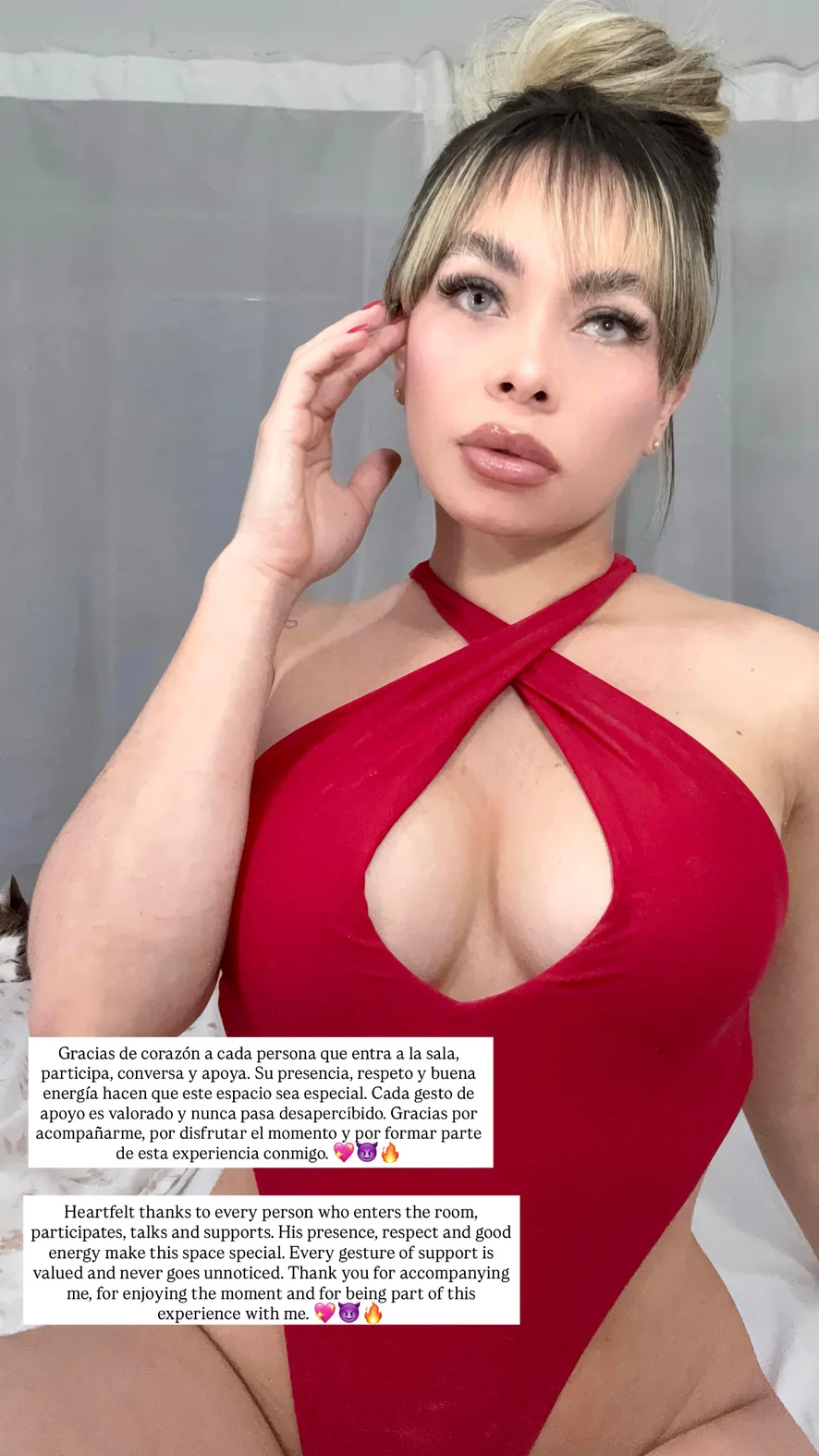 🗓️ Lunes a sábado ⏰ De 6:00 PM a 12:00 AM (Colombia) Ven a disfrutar conmigo, a reírnos, a pecar un poquito y a crear momentos inolvidables ¡Te espero con muchas ganas y buena energía! 💋✨🤍🍷 ----------------------------------------------------- 🗓️ MONDAY TO SATURDAY ⏰ From 6:00 pm to 12:00 am (Colombia) Come enjoy with me, laugh, sin a little and create unforgettable moments I wait for you with great desire and good energy! 💋✨🤍🍷
