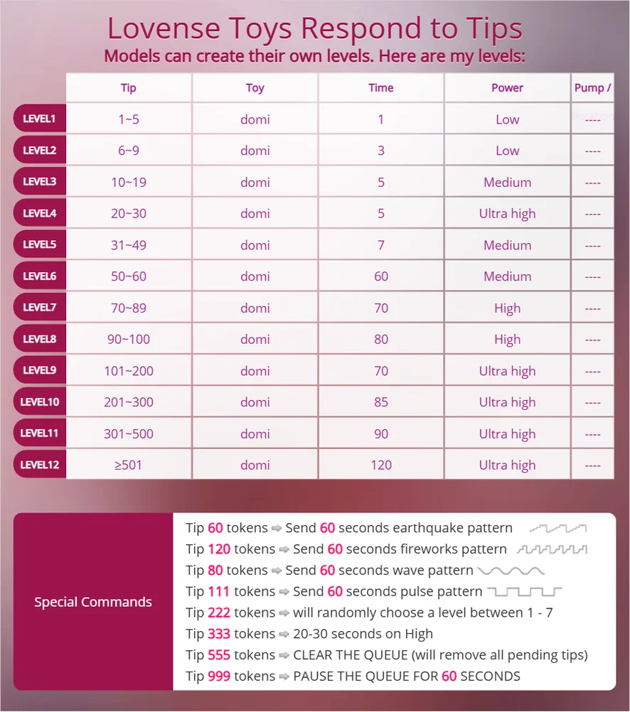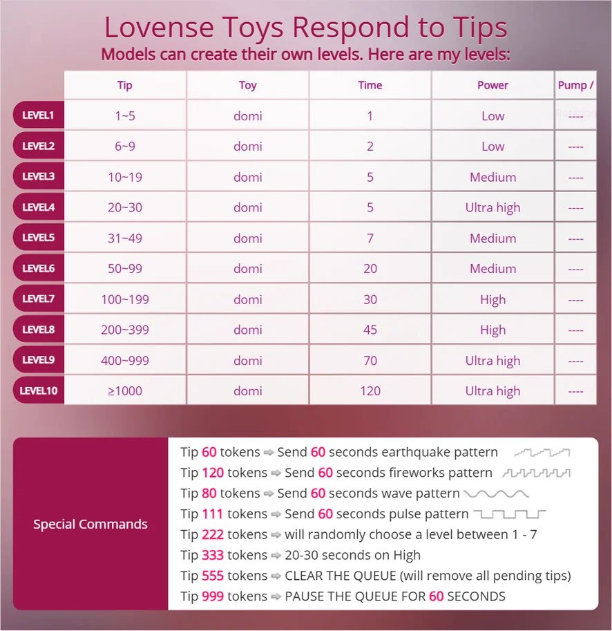 My Lovense Toy's Tip Menu